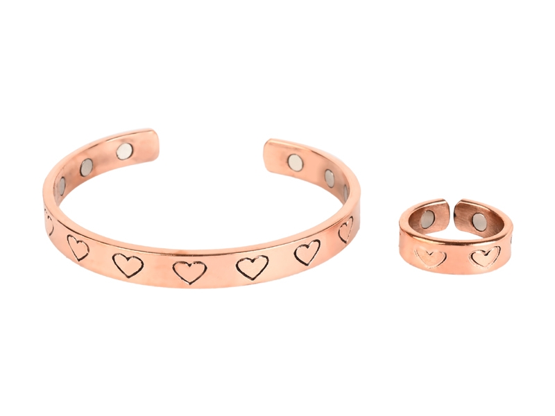 Add elegance and meaning to your jewelry collection with the Pure Copper Heart Magnetic Bracelet Ring Set. Crafted from high-quality pure copper, this beautiful set includes a matching bracelet and ring designed with charming heart accents and embedded magnets.
