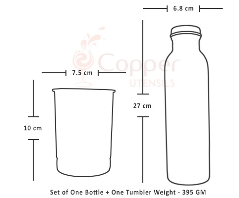 Copper is a natural anti-oxidant. It helps to strengthen the immune system which leads to faster healing of wounds and cuts. When water is stored in the Copper Water Bottle, it keeps the water cool and fresh for longer. Drinking in the copper tumbler means there is no chance of germs in water. Switch to copper water bottle instead of plastic or steel ones as water may easily become stale in either of them.Â