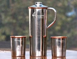 This unique set of hammered copper water bottle is specially made for reaping the benefits of copper charged water. Hammering makes the copper pure and also increases the surface area. Thus more area is in contact with water, meaning quicker charging of water.